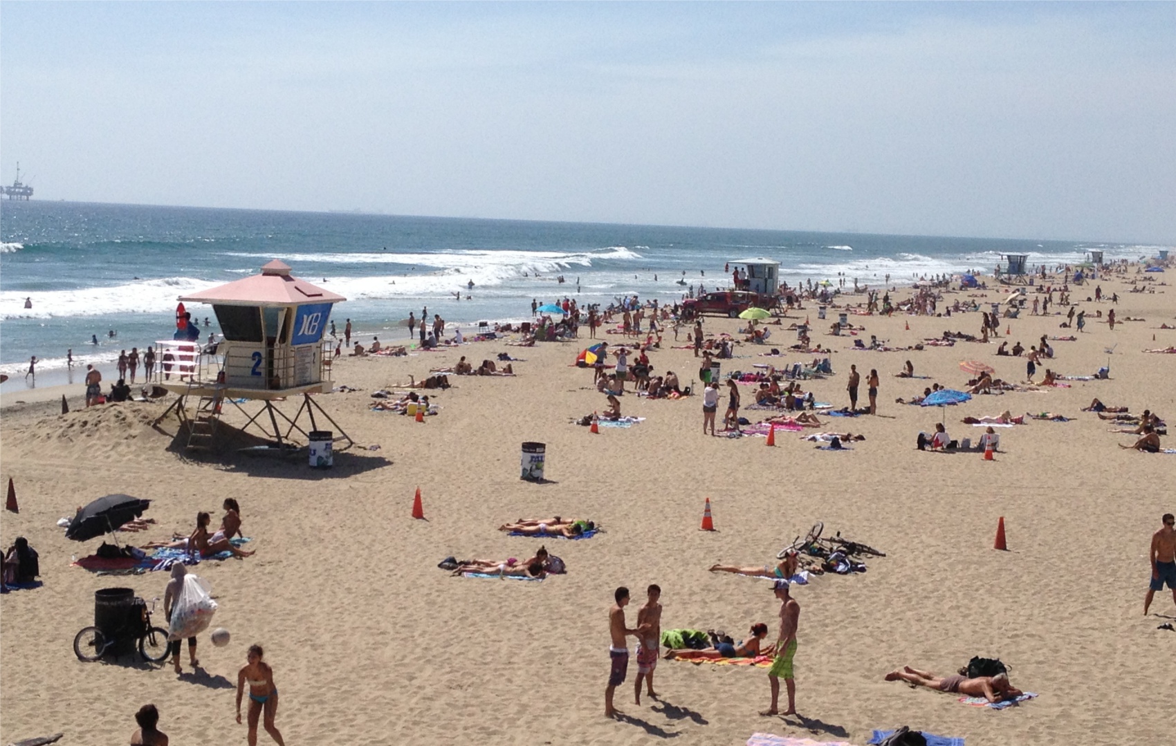 ハンティントンビーチは、白い砂浜が長ーく続く海岸でサーフィンで有名な場所です。