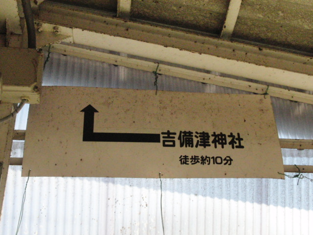 のどかな吉備津線に20分ほど揺られ、吉備津駅に到着。降りるときもドアを開けるボタンを押さなければいけなかったようで、ドアが開くのを待っていたら、車内放送で「お客さん、ドアを開けてくださ~い」と言われてしまいました。(笑)